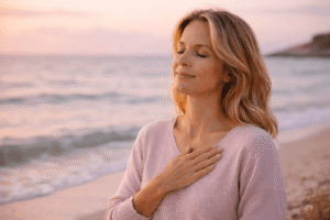 Jaz te vodim skozi proces umirjanja in ponovnega stika s sabo, ti pa postopoma začneš živeti bolj iz sebe in manj iz strahu.